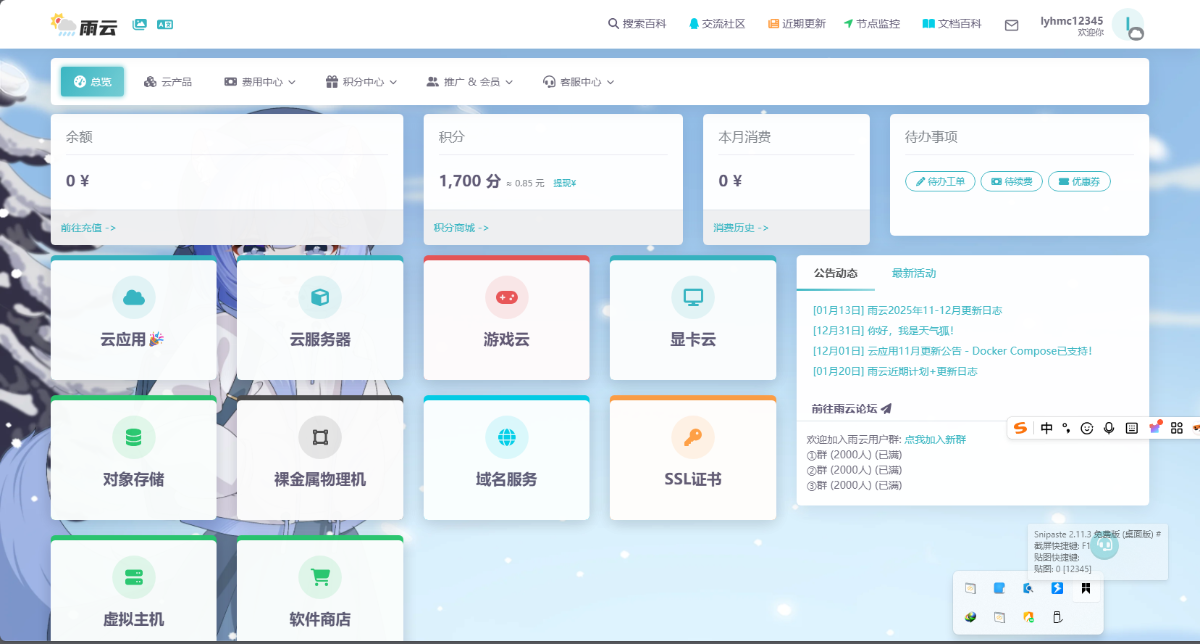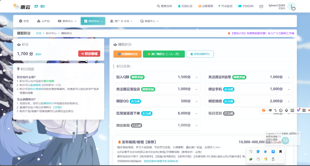 等积分到2000的时候就可以到积分商城兑换游戏云mcsm面板服了。