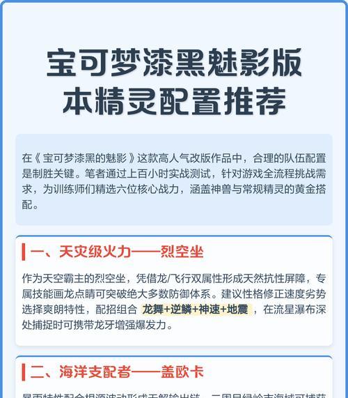宝可梦作为一款经典的角色扮演游戏,其核心的战斗系统是玩家们进行对战的重要环节。在宝可梦对战中,技能配置的合理性与否直接影响着战斗的胜负。本文将为大家详细介绍宝可梦技能攻略配置,帮助玩家们打造无敌战队。