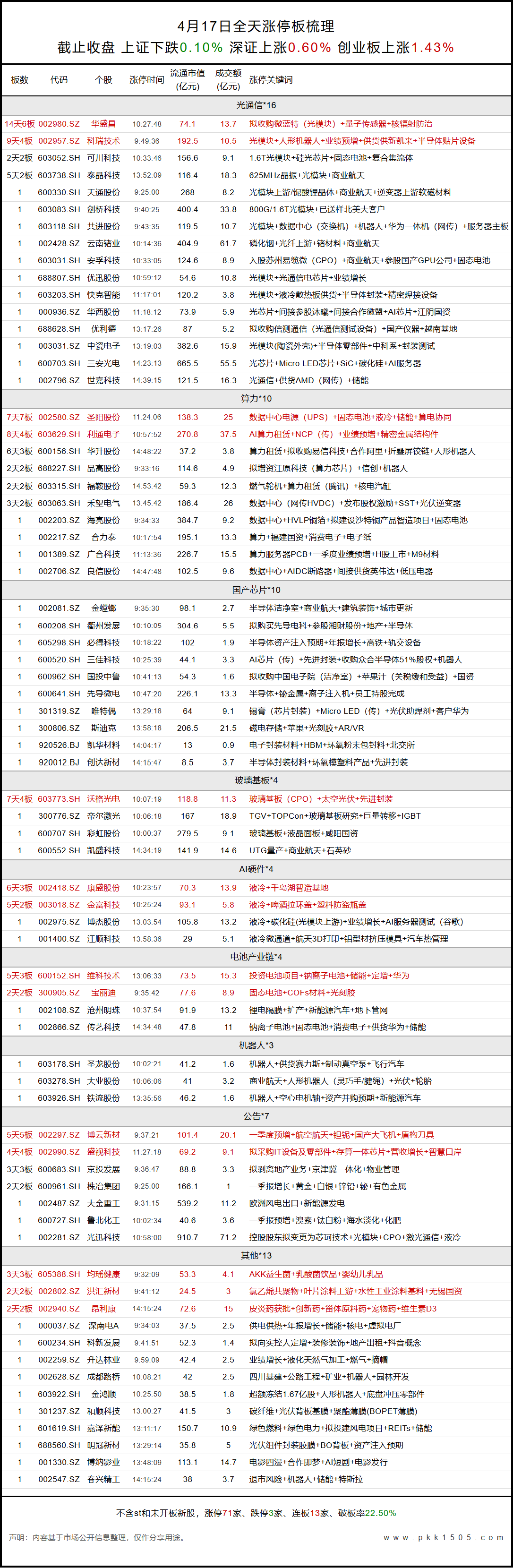 4月17日涨停板梳理