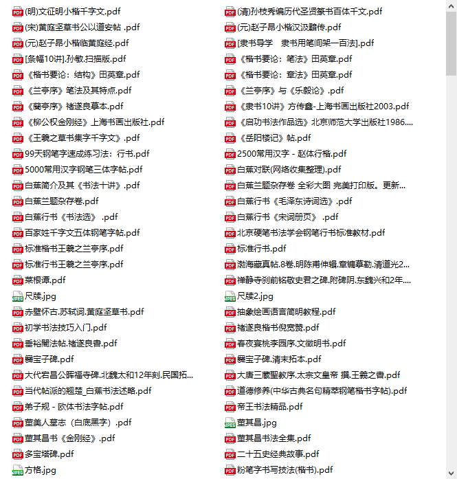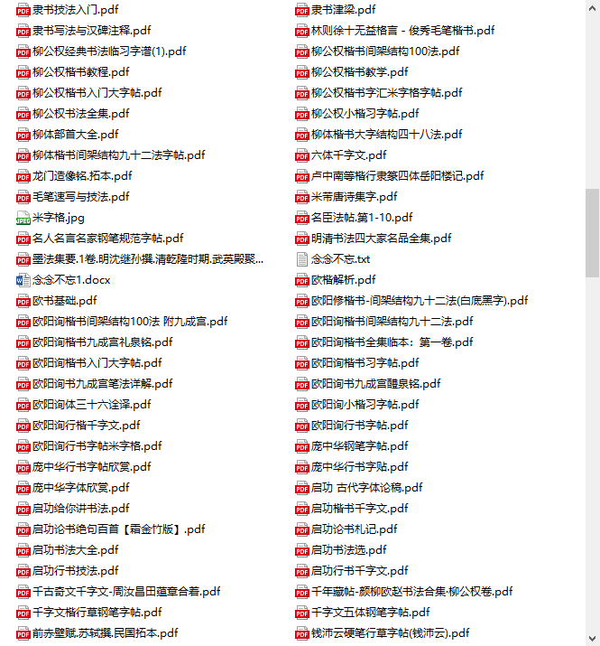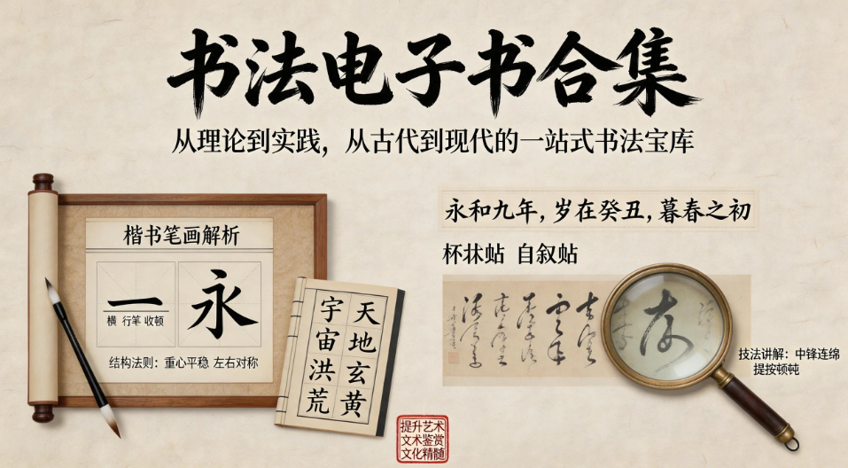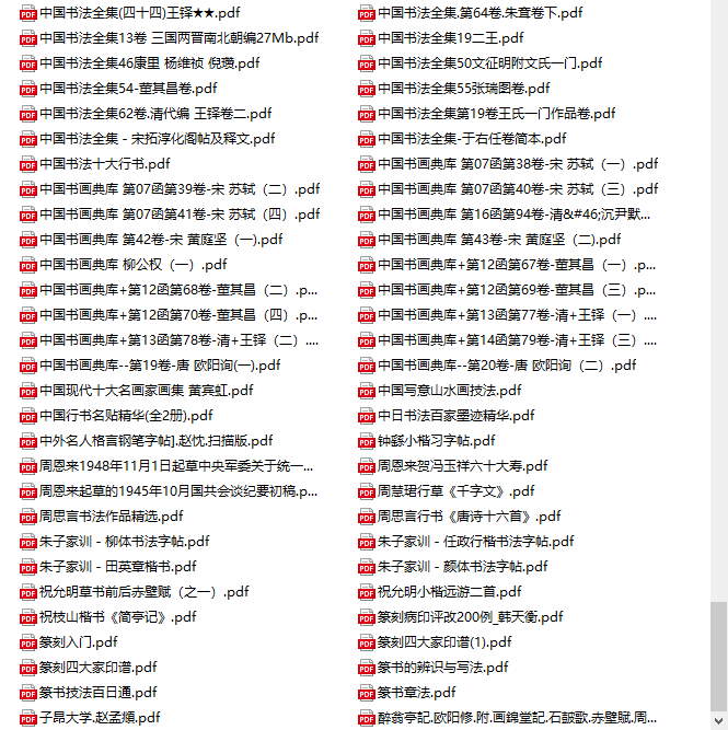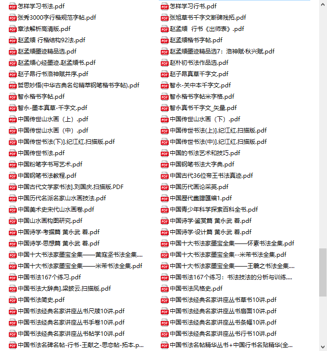 包含《中国书法大辞典》、《中国书法简史》、《怎样临帖》(邓散木)、《启功给你讲书法》等重磅理论书籍,从历史和美学角度提升对书法的认知。