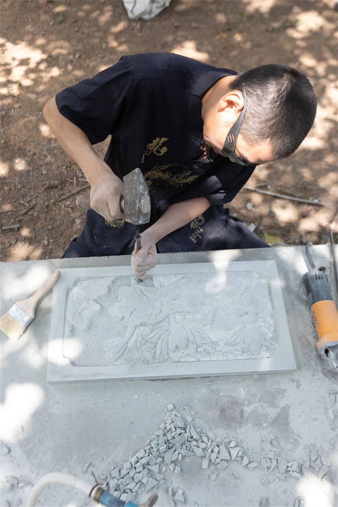 如果不慎削薄了盘上石,杭州匠人张氏家族秘传的三重错位补形法仍可挽救: