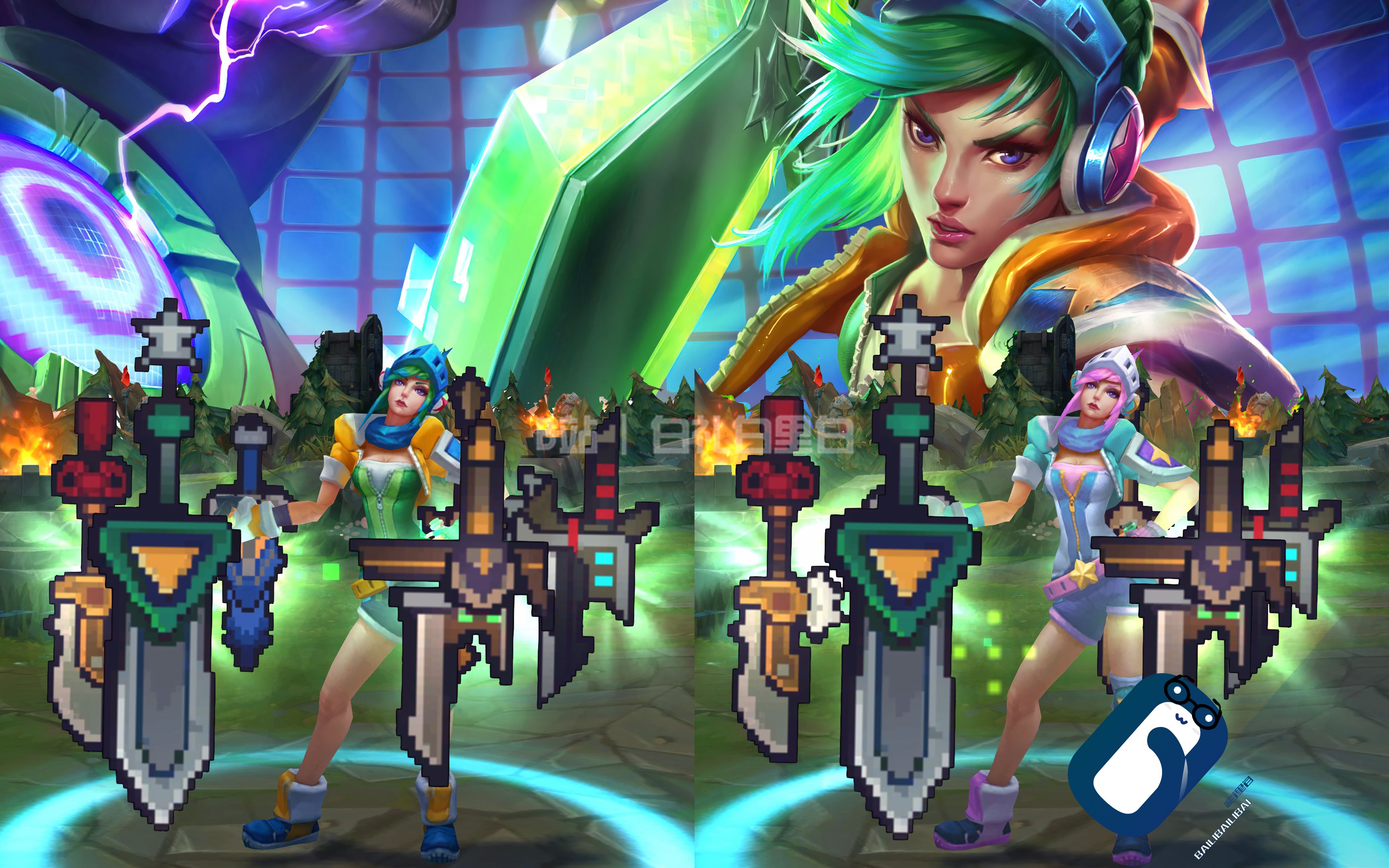 - 光剑Q技能:三段折翼之舞附带16bit像素拖影,第三段击飞范围扩大15%(判定框从圆形改为矩形)