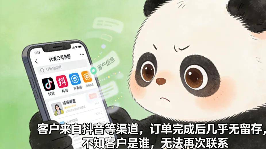 但公司老板清楚地看到一个问题:客户来自抖音等渠道,订单完成后,几乎没有任何留存。不知道客户是谁,也没有办法再次联系他们。