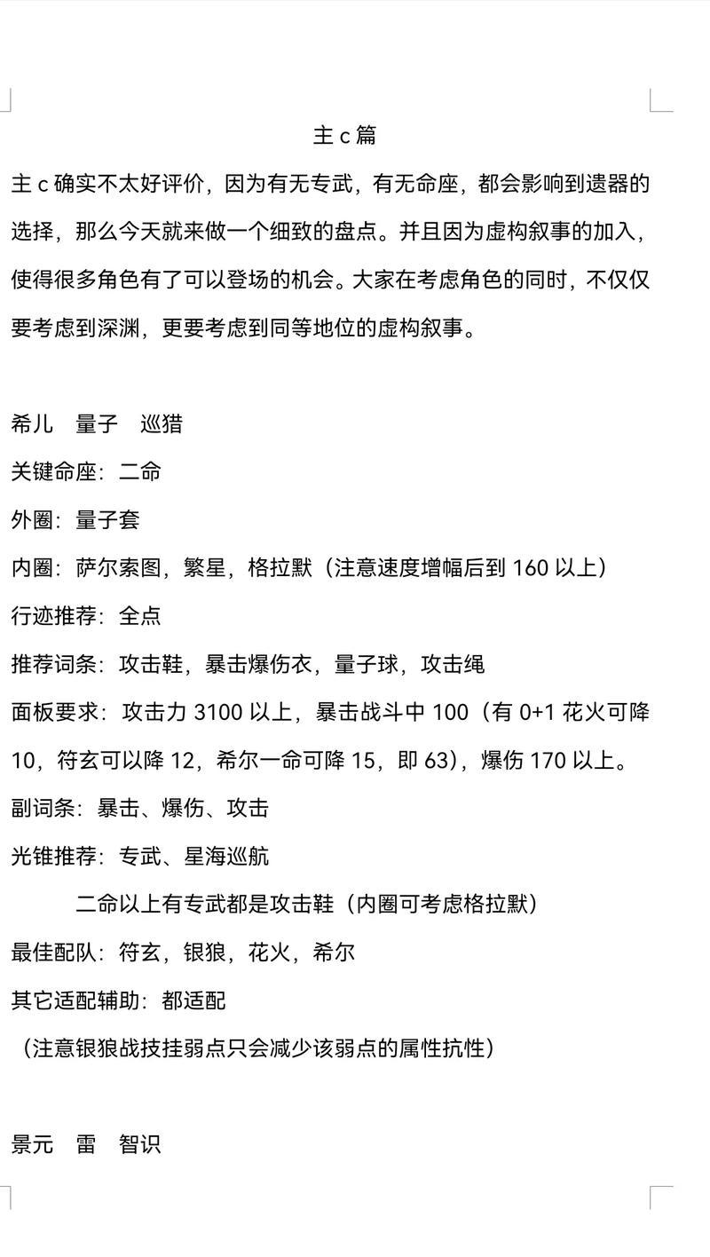 巡猎主C作为一种平民职业,在《崩坏:星穹铁道》中具备较高的生存和输出能力,玩家可以通过合理的技能和装备搭配,以及不断的成长和发展来提升其战斗能力。
