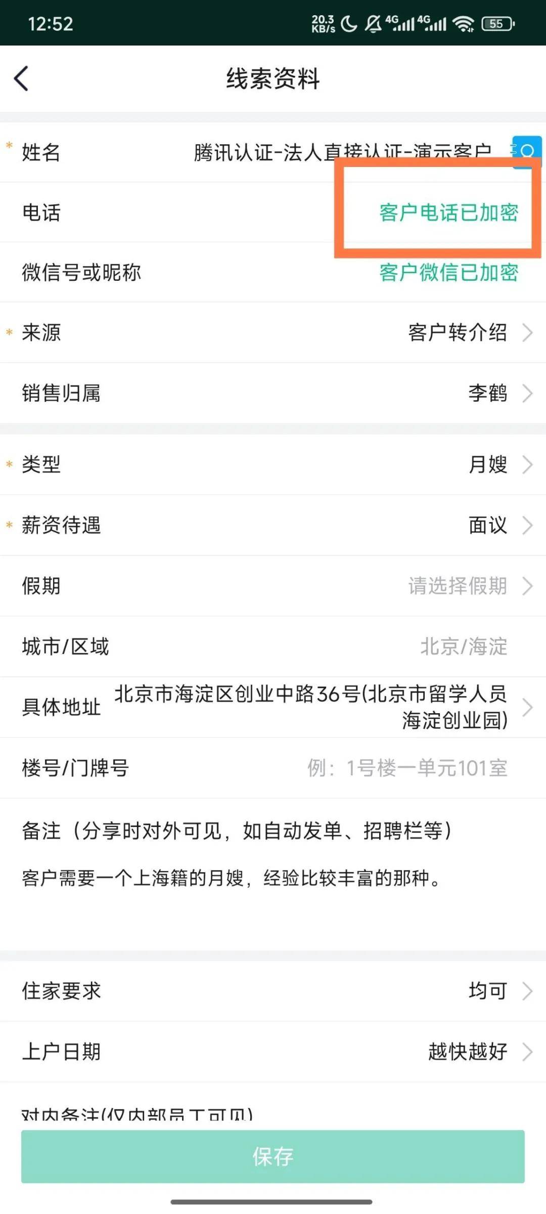一是客户和阿姨的真实手机号对所有经手的销售完全公开,存在信息泄露甚至飞单的风险;
