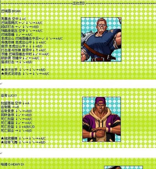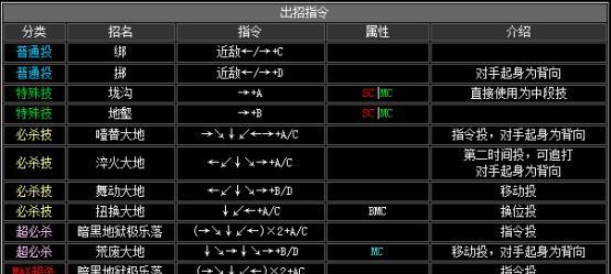 作为一款经典的格斗游戏,《拳皇》以其精妙的操作系统和丰富的技能系统吸引了无数玩家。在游戏中,掌握技能表的攻略成为了玩家们提升实力、战胜对手的重要途径。本文将为大家详细介绍拳皇技能表的攻略,并带来15个的标题和内容,助你成为无敌王者!
