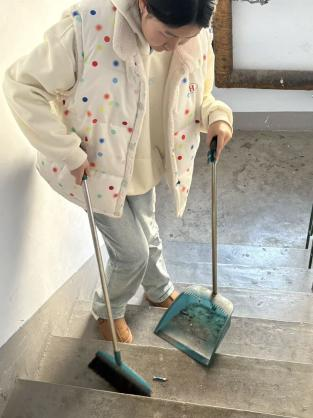 忙碌的身影被路过的居民看在眼里,几位爷爷奶奶频频夸赞志愿者做事细心周到,一位阿姨笑着说道:“楼道这下彻底变亮堂了,老人小孩走路都更安全,太谢谢你了!”朴实的话语满含认可,也让志愿者浑身充满动力,愈发认真地投入到清洁工作中。经过一上午的忙碌,原本杂乱的楼道焕然一新,地面干净无杂物,扶手光洁无污渍,玻璃窗透亮采光足,整洁的环境让居民出行更舒心,也让志愿者收获了付出后的满满成就感