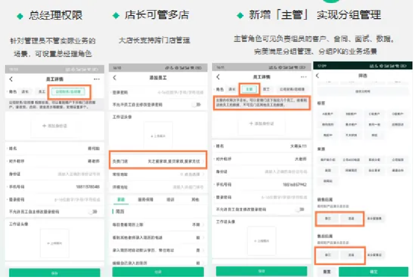 系统构建了四级角色体系,涵盖总经理、店长、主管与员工,支持分组管理与数据隔离。过程指标与业绩看板自动统计,关键数据一目了然;高级权限管控、自动预警机制和异常行为预警提示,筑牢企业数据安全防线。