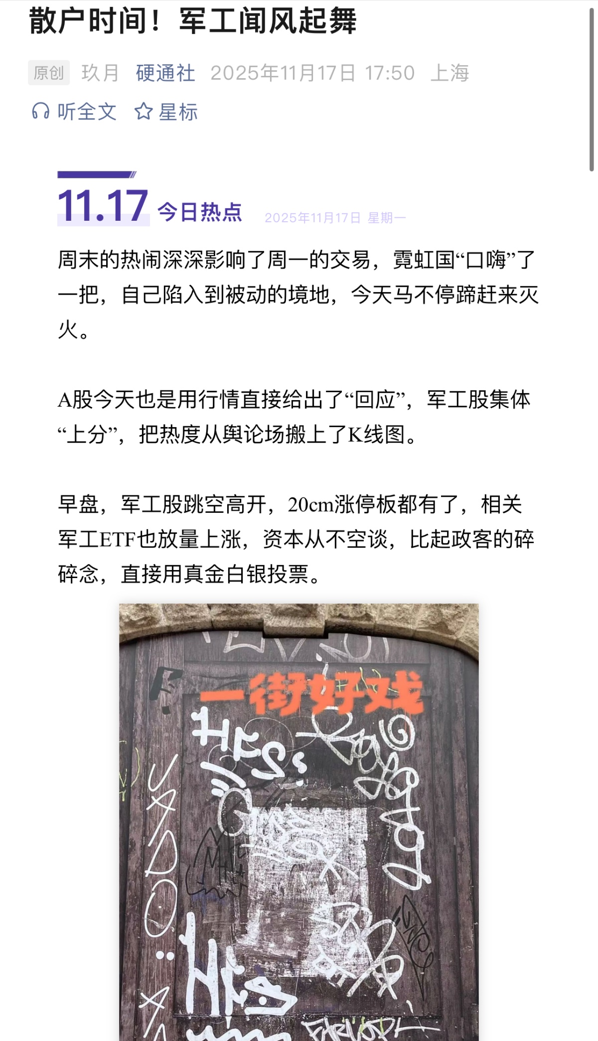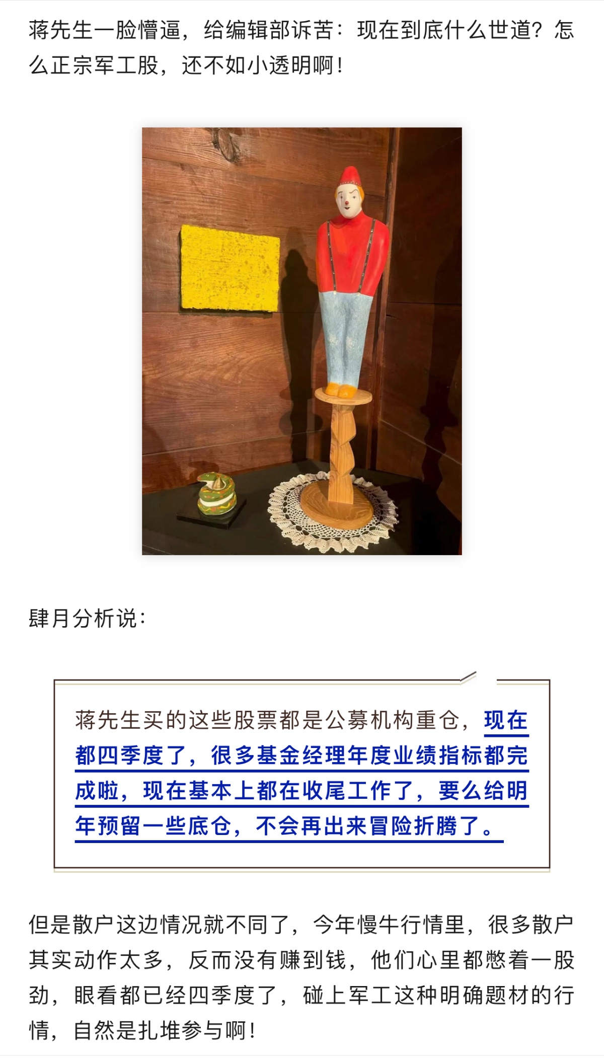 感觉现在是游资和散户的时代,还是打野来劲,动不动就能10cm、20cm,要跟上热点轮动,踩上点,还是相当有技术含量的。飞机大炮今天基本没咋动,正宗军工就是个精细活,需要慢慢熬。