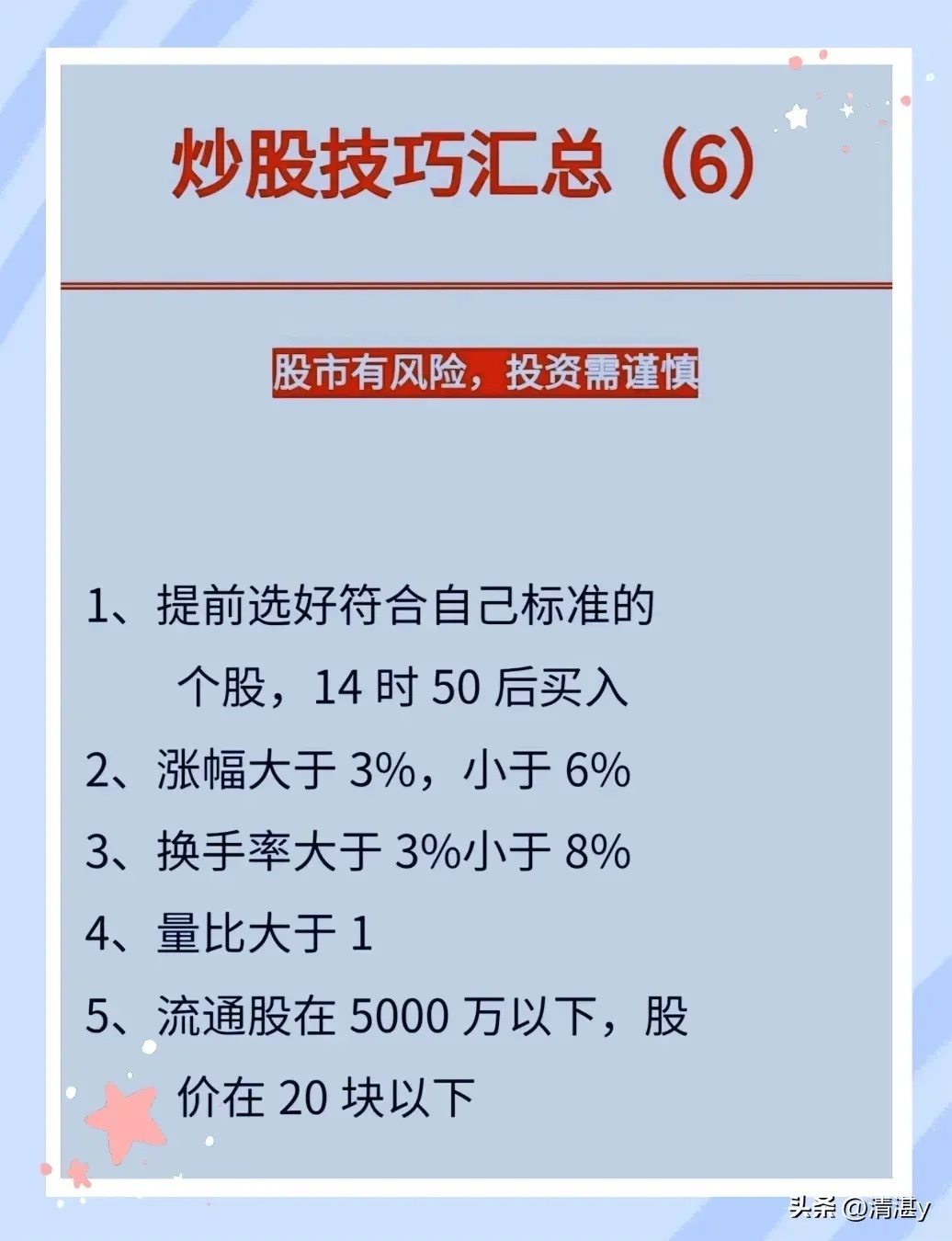 手里攒了点钱,看着身边人炒股时不时赚点零花钱,心里也痒痒的?可打开股票 APP,满屏的曲线和数字看得头大,不知道从哪儿下手;听说炒股风险大,又怕一进去就赔钱,到底新手炒股该注意什么呢?一起往下看吧!