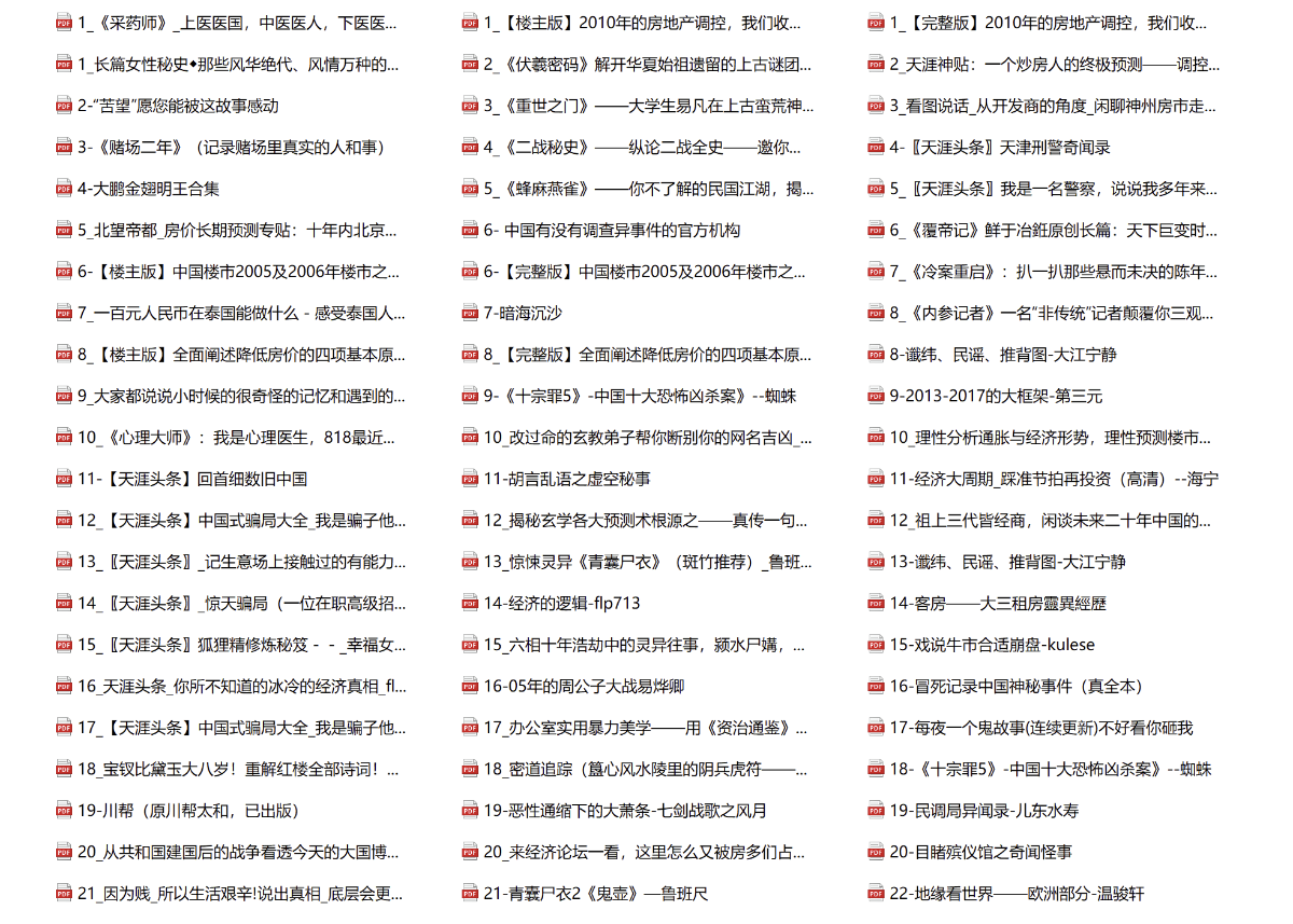 从去年开始分享天涯神贴合集以来网盘不知道被河蟹了多少次,很多时候补链接都补不过来(很多内容还是比较敏感,正常能分享出来的就不能算是神贴了吧,至少我是这么认为的!),幸好天涯神贴合集的这些绝世隐学