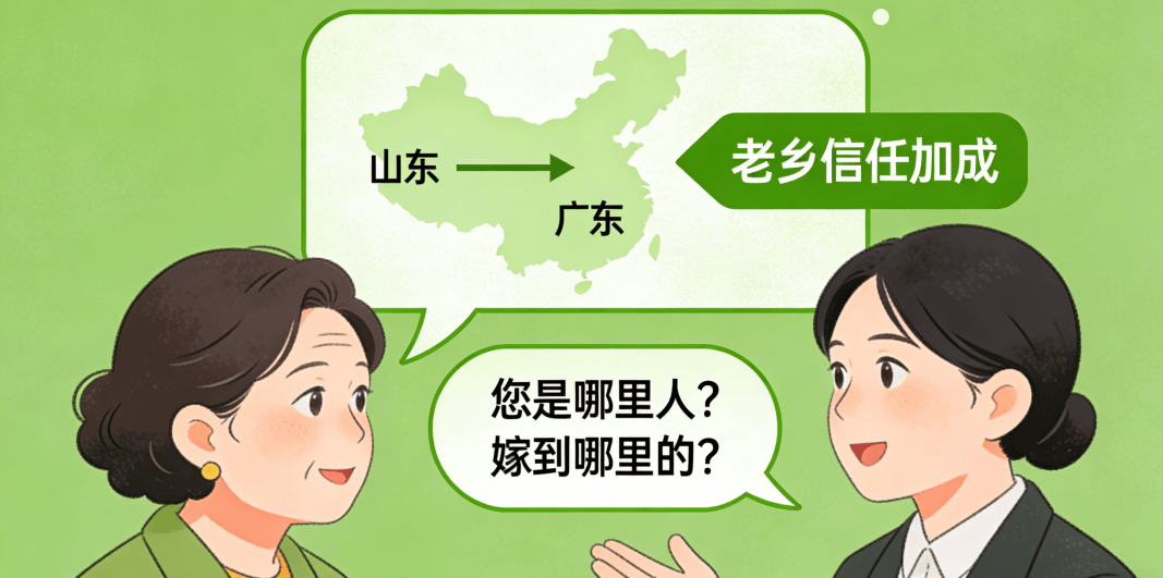别只问籍贯。这不仅仅是基本信息。一句“您是哪里人?嫁到哪里的?”可能问出意想不到的机缘。