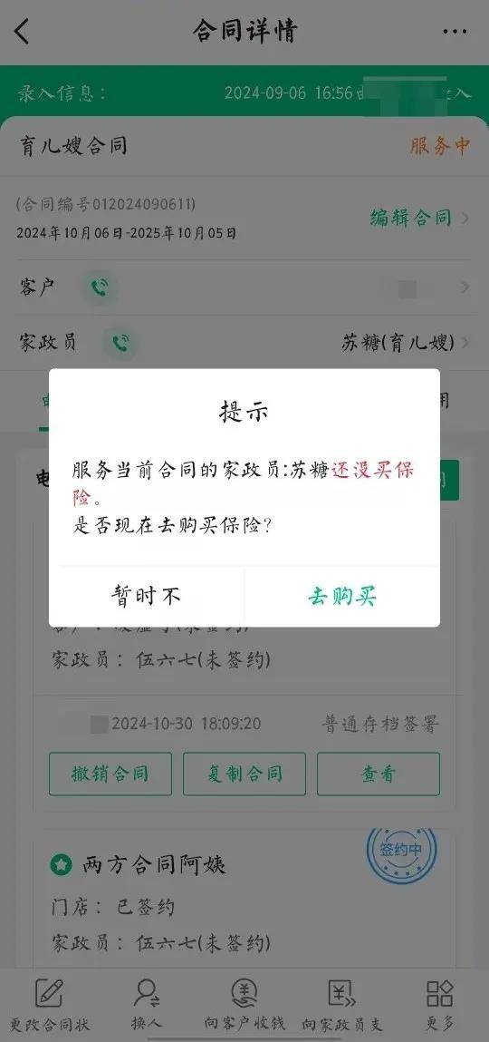 在签约后,主动向客户和阿姨清晰出示保单信息,解释保障范围。