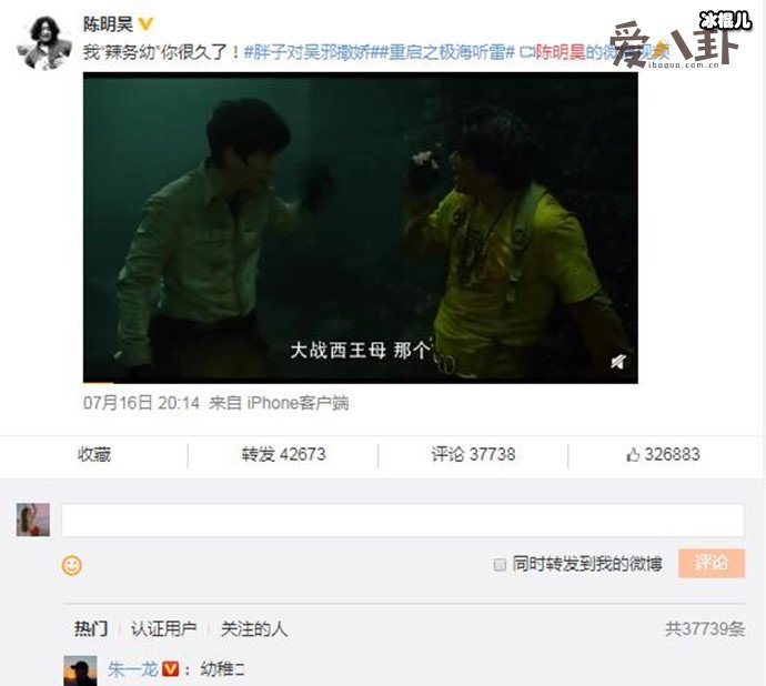 剧中的胖爷王胖子是陈明浩扮演的,他是众多版本王胖子里小编最喜欢的一位,很有喜感演技精湛。他发了条视频微博是剧中的某个片段,并配文说:“我辣务幼”你很久了”,朱一龙就在下面评论说他幼稚,陈明浩回复喊朱一龙天真。对于他们俩的互动,网友磕的起劲,评论说别人幼稚的人才是幼稚,哎呀,都是小男孩嘛。