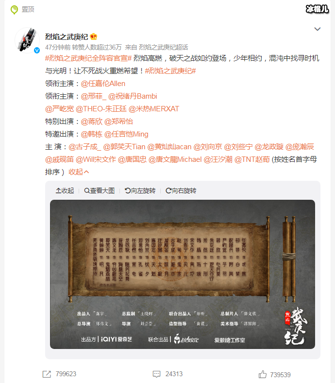 真人版电视剧《烈焰之武庚纪》此前发生插曲而迟迟未见开机,还有各种传闻,12月26日该剧全阵容官宣了,并发布部分演员表,这个官宣方式有点特别,官博配文:”烈焰高燃,破天之战如约登场,少年相约,混沌中找寻时机与光明!让不死战火重燃希望!“