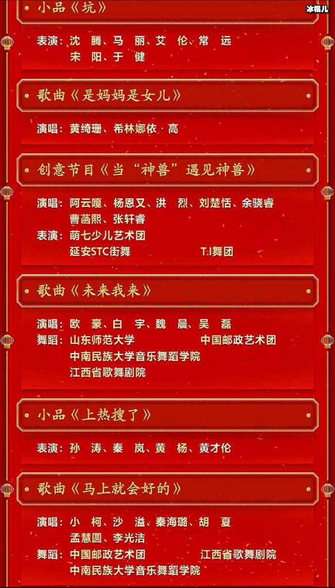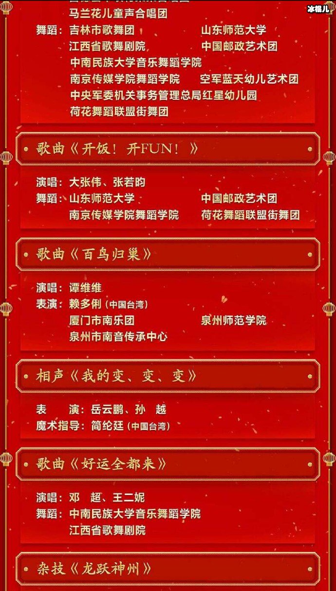 2023年央视春晚节目单发布