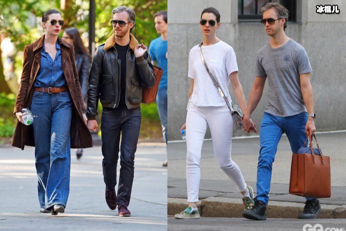 KK和老公现身街头,定制V领开
