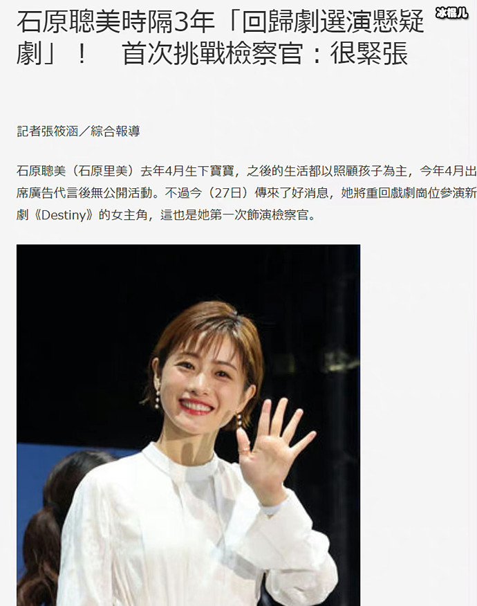 石原里美已于去年4月升级当妈妈了,生下了第一个孩子。今年7月石原里美产后正式复出,非常的低调。近日,据日媒报道,石原里美时隔3年回归拍剧,并且是担任主角。