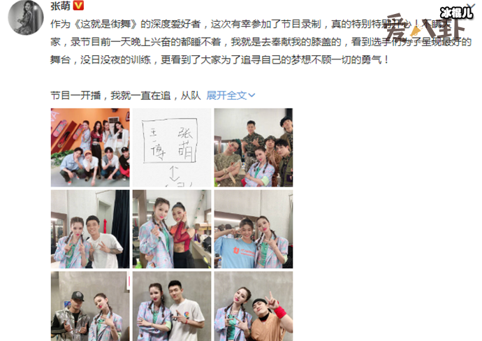 张萌说自己追《这就是街舞》节目,是深度爱好者喜欢到一期都不落下,看得出是铁粉了。在发文中夸选手,例如夫妻档的杨文韬和CiCi,那奇思妙想的创意棒呆了,Move简直违背“人体工学”,Cos木乃伊那段舞蹈干脆利落,像是看来部盗墓电影。