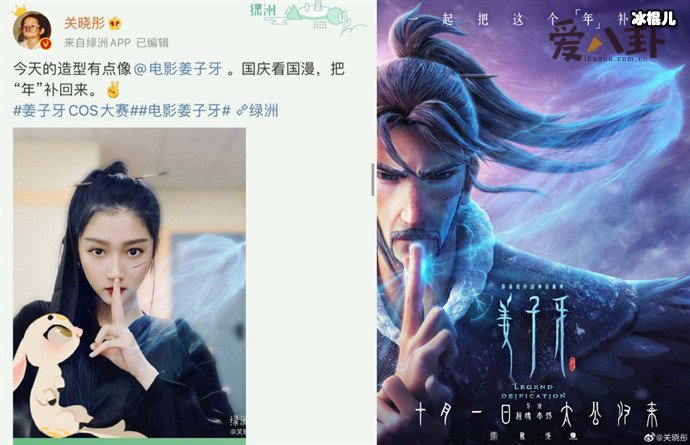 据悉,关晓彤宣传的国漫是《姜子牙》,将在10月1日中秋国庆双节的当天上映,那么,大家会对这部国漫抱有期待吗?欢迎一起讨论。