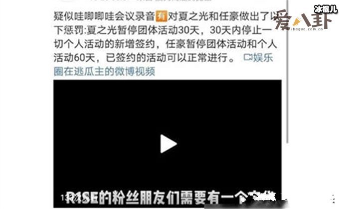 但是因为这一事件在影迷圈内引起了不少不满,因此有网友爆料R1SE公司召开会议惩罚R1SE公司的内容,任豪比光明正大不少。接着,哇唧唧哇开会口音也被曝光,公布了R1SE任豪夏之光被罚的具体内容:夏之光公开道歉,在30天内新签合同终止个人活动,已签合同继续执行,公司保留追偿权。任豪在60天内公开道歉,停止个人及团队活动,已签约继续履行,公司保留追偿权。基本内容与此前爆料的处罚内容一致,但最终该公司居然还反咬一口?企业表示:后援会向粉丝们传达的时候,不要占用公共资源,不要把企业在线会议内容转移到网络上。另有:未来若有人对此事再一次爆料,大家要了解对方是为了蹭流量不择手段,公司也不会再去关注。