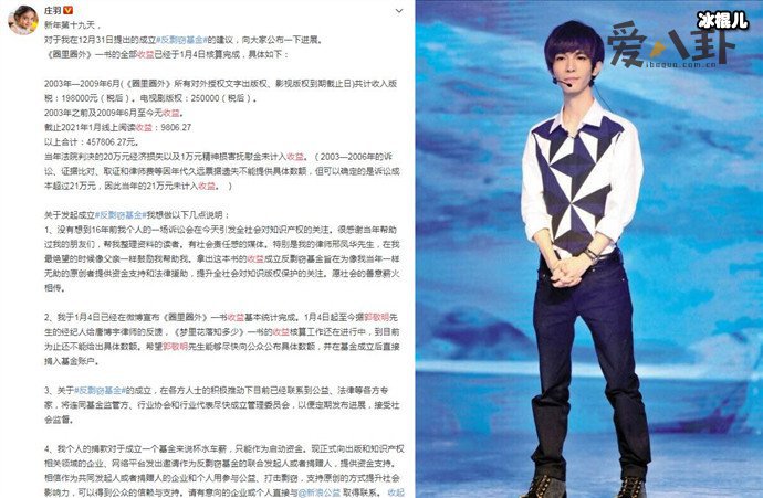 郭敬明向抄袭了15年的作者庄羽道歉,并希望将收益作为反剽窃的基金,然而今天是2021年的1月19号了,庄羽发文公开了基金的进展情况,并开始催郭敬明公开收益。这条微博随后成为热搜的讨论焦点之一,都在等待郭敬明的回应。