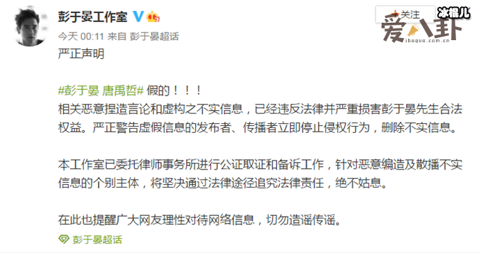 想想华晨宇和张碧晨未婚生女一事也是由一位网友爆的料,现在又有网友爆料说彭于晏唐禹哲出柜,难道每一次都是谣传吗?可是张碧晨生女入户口一事是真的啊,但是彭于晏出柜唐禹哲一事,工作室深夜也立即回应澄清,称是烂透了的新闻。