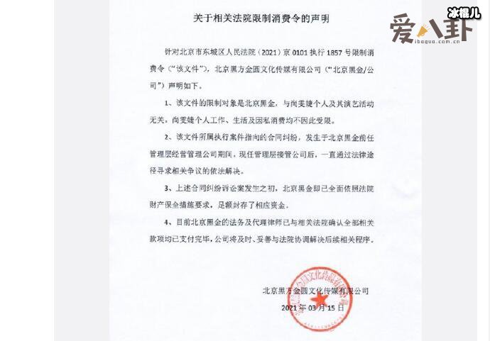 尚雯婕方回应被限制高消费
