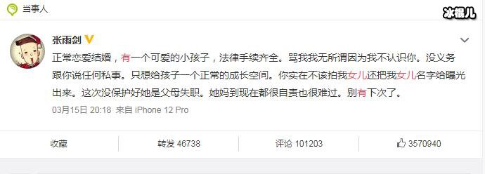 张雨剑承认有女儿