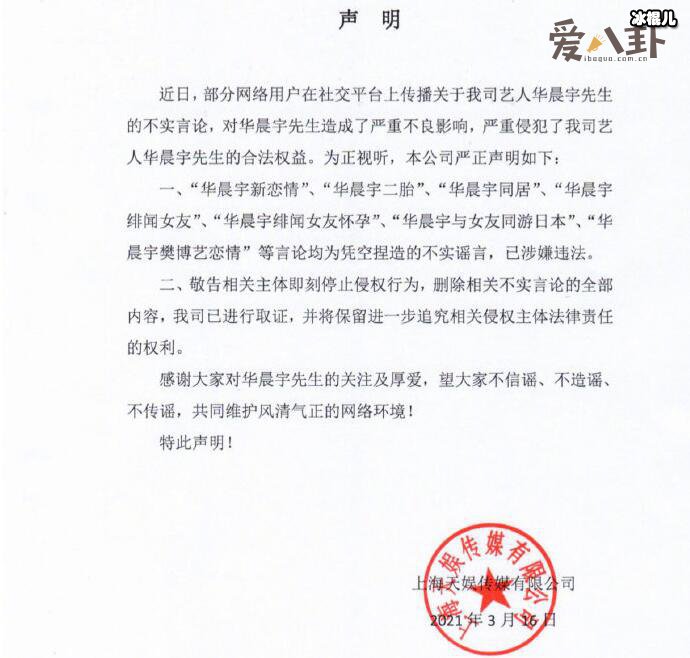 华晨宇和樊博艺双双否认了恋情,华晨宇工作室直接发生命,表示那些都是不实言论的造谣,要求立即停止对华晨宇的侵权行为,删除相关的不实言论,公司全也进行调查取证,保留追究相关侵权主体的法律责任。