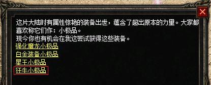 在游戏中,副本是获取装备和道具的重要途径之一。通过多进行副本挑战,我们可以获得更多的装备和道具,提高自己的实力。