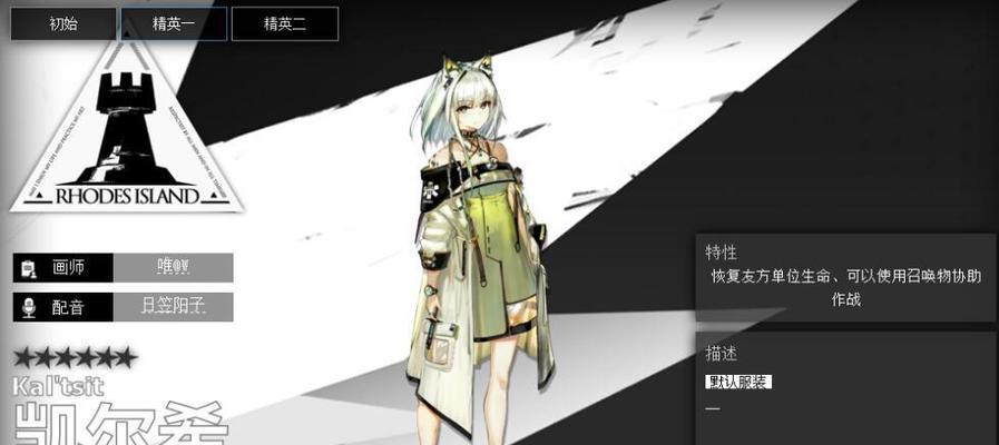 凯尔希是一名辅助干员,初始职业为医疗干员。她的初始生命值为576,攻击力为106,防御力为30,再加上她出色的技能属性,使得她在游戏中扮演着重要的角色。
