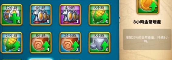 2.提高建筑升级加速道具:可以让你在一定时间内更快地完成建筑升级,节省时间成本。