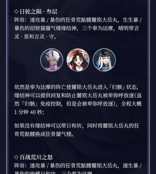 阴阳师是一款备受玩家喜爱的日式角色扮演游戏,逐路之争是最新的全新副本。本文将为大家全面介绍阴阳师逐路之争全新副本的攻略,助你轻松通关!