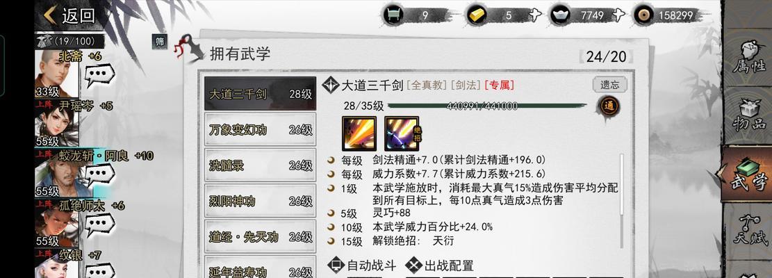 技能是徒弟在战斗中发挥重要作用的一部分。我们需要选择合适的技能并消耗金币和技能书来提升徒弟的技能等级。
