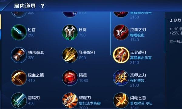 暗影战斧和无尽战刃都是孙尚香输出能力的重要保障。暗影战斧能够为她提供额外的暴击效果,使输出更加可怕;无尽战刃则能进一步提升她的暴击伤害。