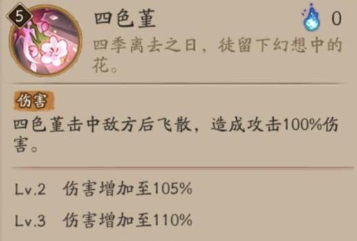 座敷童子-毒妇是一只属性为火的式神,拥有较高的攻击力和较低的生命值,技能“毒刃”可以攻击目标并有一定几率使目标进入中毒状态,是一个非常适合作为输出型式神。