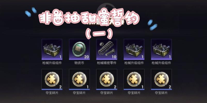 《和平精英》是一款备受玩家喜爱的游戏,其中的甜蜜誓约更是备受关注。许多玩家想要在游戏中获得甜蜜誓约,但并不知道如何操作。本文就为大家详细介绍如何获得甜蜜誓约的攻略。