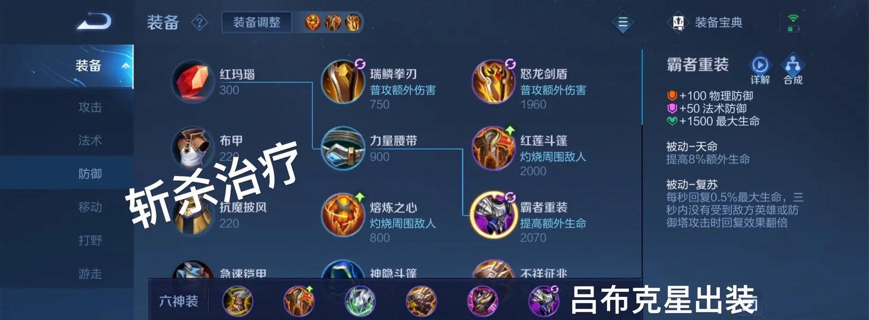 -加强凯旋边路的生命回复能力,选择合适的装备。