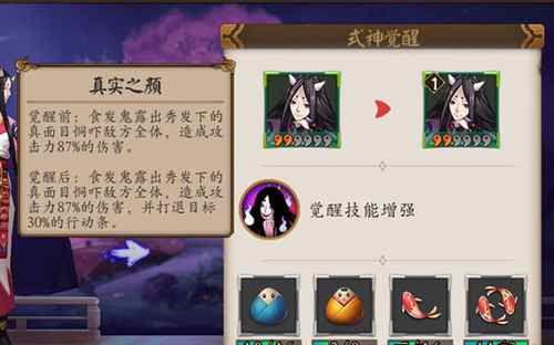 - 觉醒前:“真实之颜”技能可以让食发鬼对敌方全体造成攻击87%的伤害,并击退敌人30%的行动条。