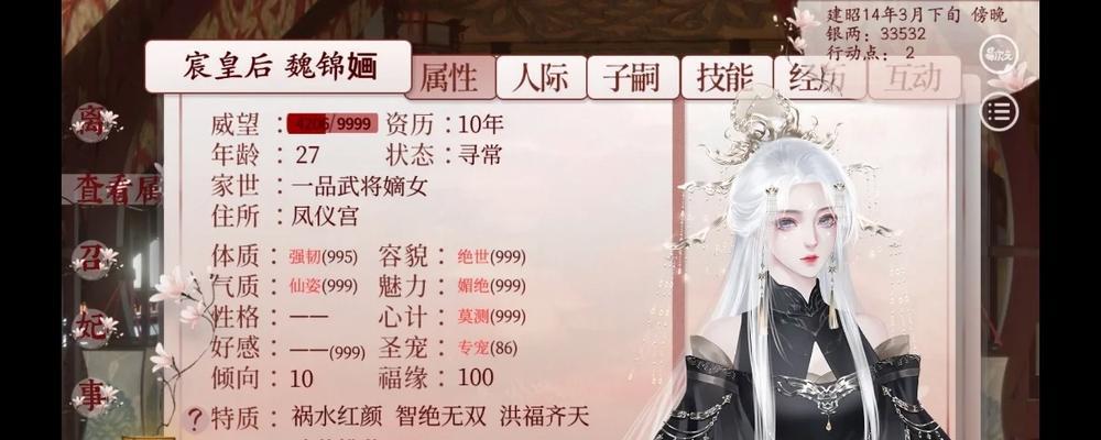 在《深宫曲》这款古风宫斗手游中,玩家们扮演的角色是一位争夺皇位的王妃,而技能的运用将在她们的命运中起到至关重要的作用。本文将以深宫曲技能攻略为主题,为玩家们详细介绍如何巧妙运用技能,成为一位无敌的王妃。