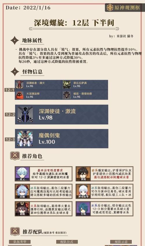 原神12层攻略(解密原神最新版本12层攻略,带你掌握绝佳策略)