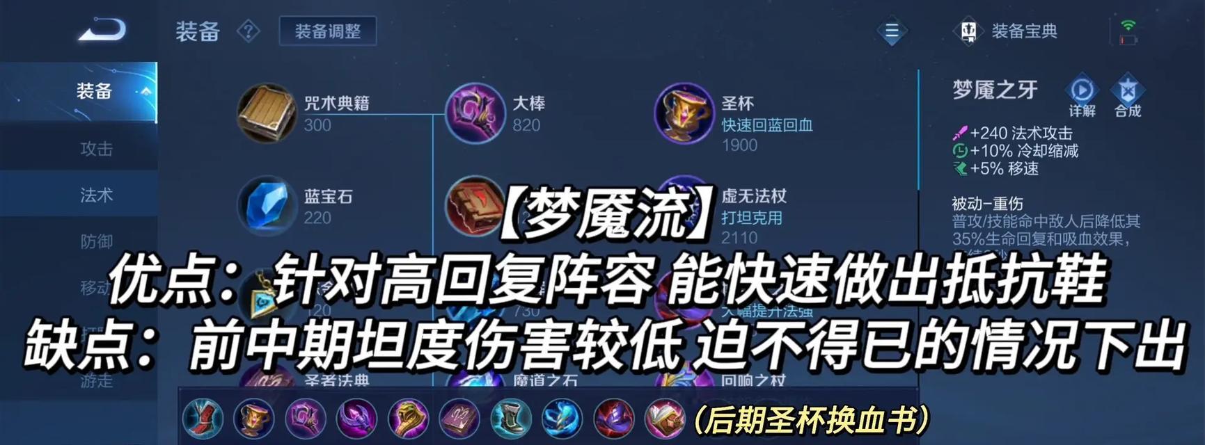 1.出装选择:魔女之刃、虚无法杖、痛苦面具等
