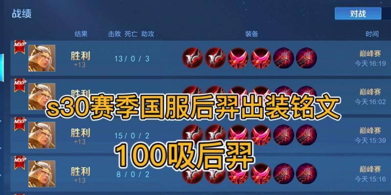 后羿作为《王者荣耀》中的射手英雄,在游戏中具有强大的输出能力。而如何选择合适的装备来提升后羿的输出,是每个后羿玩家都需要面对的问题。本文将为大家详细介绍以国服后羿出装攻略为主题,帮助玩家提高自己的后羿操作水平。