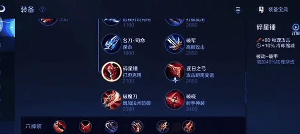 2.不同装备的作用分析:破军提供高额物理攻击,红莲斗篷增加生存能力,暴烈之甲加强输出能力等。
