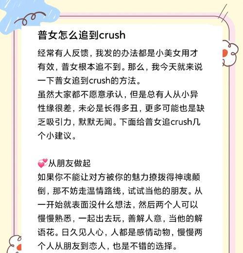 每个女生都是一个独特的个体,拥有各自的喜好、需求和情感。如何与女生建立良好的关系,理解她们的内心世界,并以爱相随,成为一项重要课题。本文将为你提供一些关于女生攻略的宝贵建议,让你更好地了解她们的需求,并与她们建立深厚的情感联系。