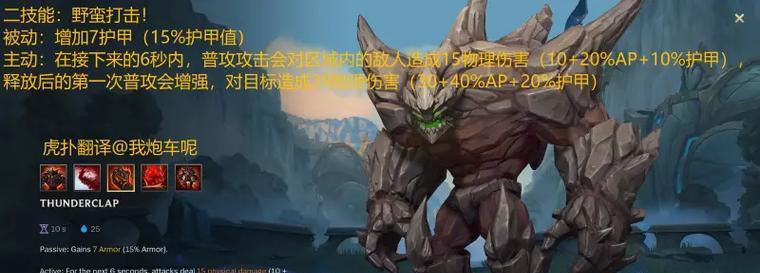 石头人的技能是他在游戏中的关键所在。合理利用技能可以让石头人在对战中发挥出最大的潜力。比如,他的第一技能“巨力重击”可以造成范围伤害和击退效果,适合用来清理小兵和控制敌人。