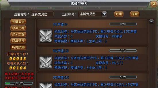 在《火影忍者》游戏中,每个称号都有不同的等级。等级越高,获得的称号难度也越大。