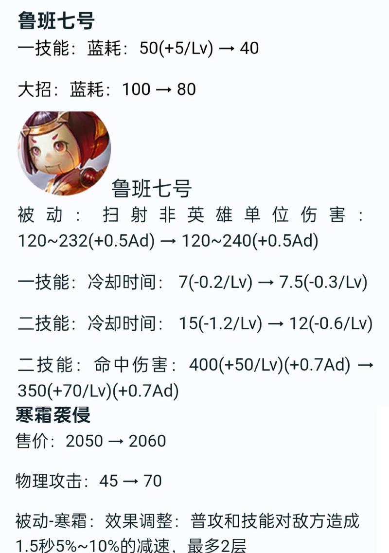 作为一名射手英雄,鲁班七号凭借其高爆发输出和远程打击能力,成为了许多玩家钟爱的英雄之一。本文将为大家介绍适用于鲁班七号的铭文出装攻略,帮助玩家们在游戏中发挥出最大的潜力。