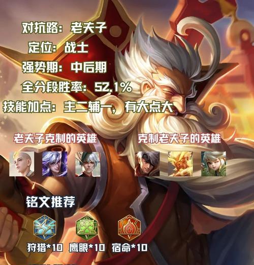 作为王者峡谷中的一位重要辅助英雄,老夫子在游戏中有着举足轻重的地位。合理选择铭文和出装将直接影响老夫子在游戏中的表现。本文将为大家详细介绍以老夫子为主题的铭文出装攻略,帮助玩家们更好地掌握老夫子这位英雄的技巧,发挥出他的全部实力。